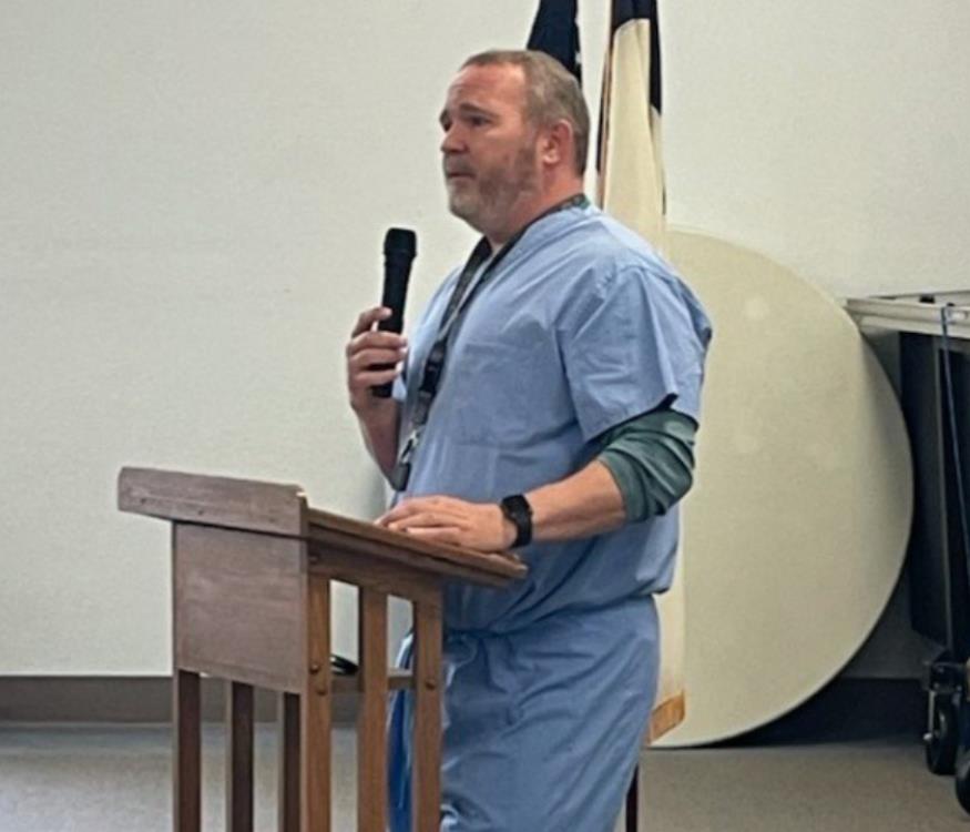Dean Heideman, CRNA at Susan B. Allen Memorial Hospital, presenting to SBAMH Auxiliary on April 28, 2022. Photo submitted