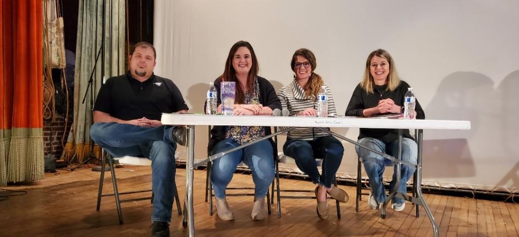 From left to right, Rob Klem, Jamie Klem, Laci Ybarra and Brandi Kaus await what turned out to be a heated discussion at the Augusta Historic Theatre. Photo submitted.