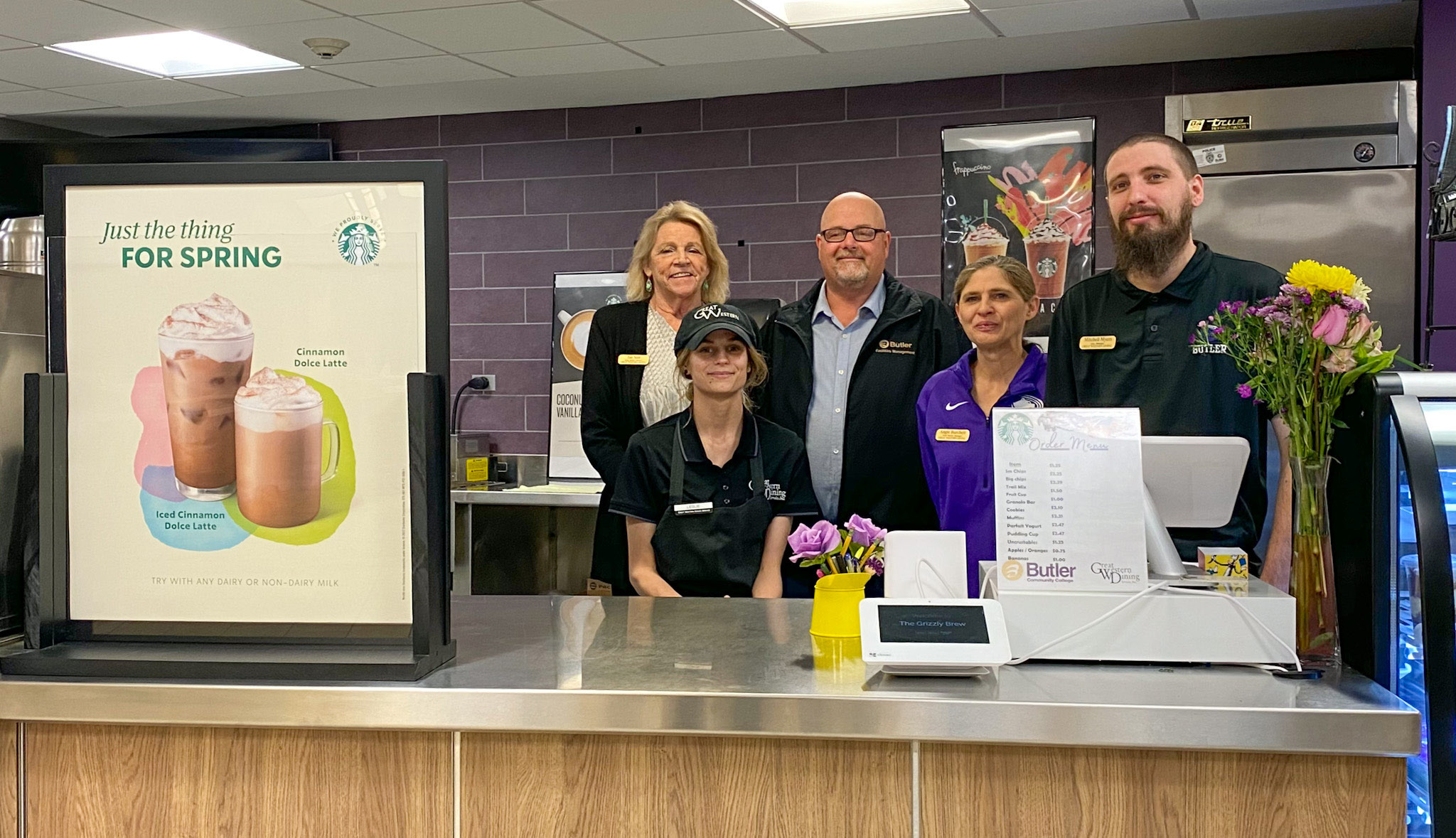 From left to right, back row: Jan Stitt, Director of Food Services, Ireland Turner, Facilities Director, Angie Burette, Catering Supervisor and Mitchell Myers, Andover BCC Starbucks Manager. Front row: Leslie McFadden, El Dorado BCC Starbucks Barista. All photos by Nikole Babb.