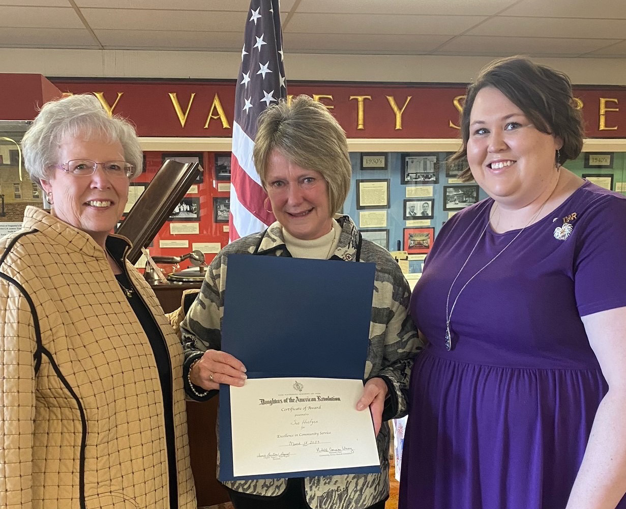 From left to right, Priscilla Templin, Community Service Committee Chair, Sue Hoefgen, and Jamie Barton, Regent, Isabella Weldin Chapter DAR. All photos by Deanna Bonn.