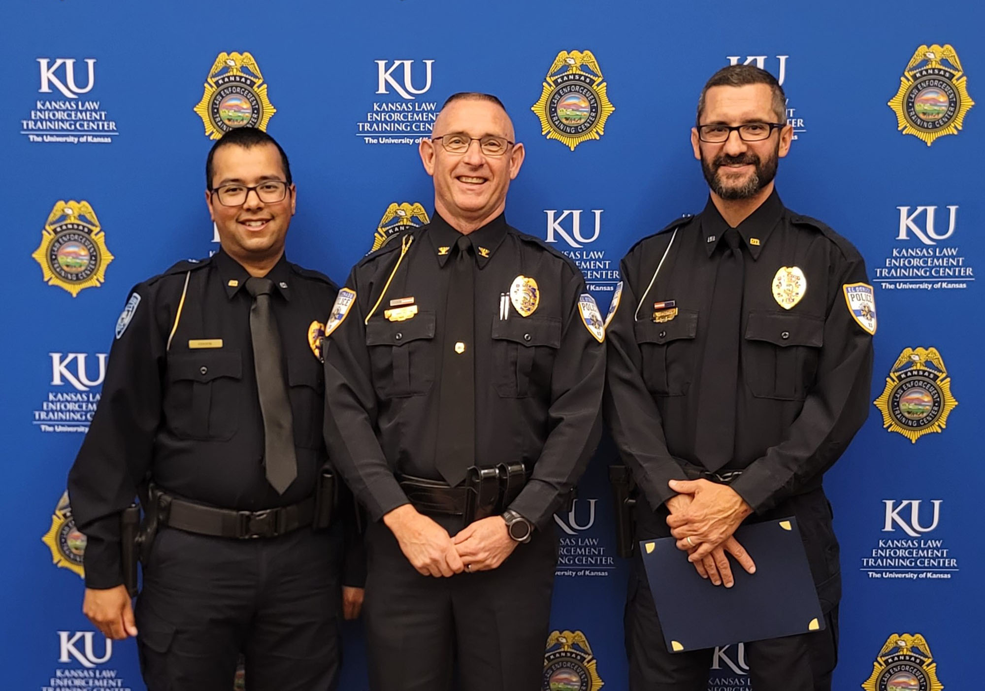Photo-Caption:From left to right, Officer Andrew Couch, Chief Michael Holton and class president Officer Chris McGathy after graduation. Photo courtesy of El Dorado Police Department.