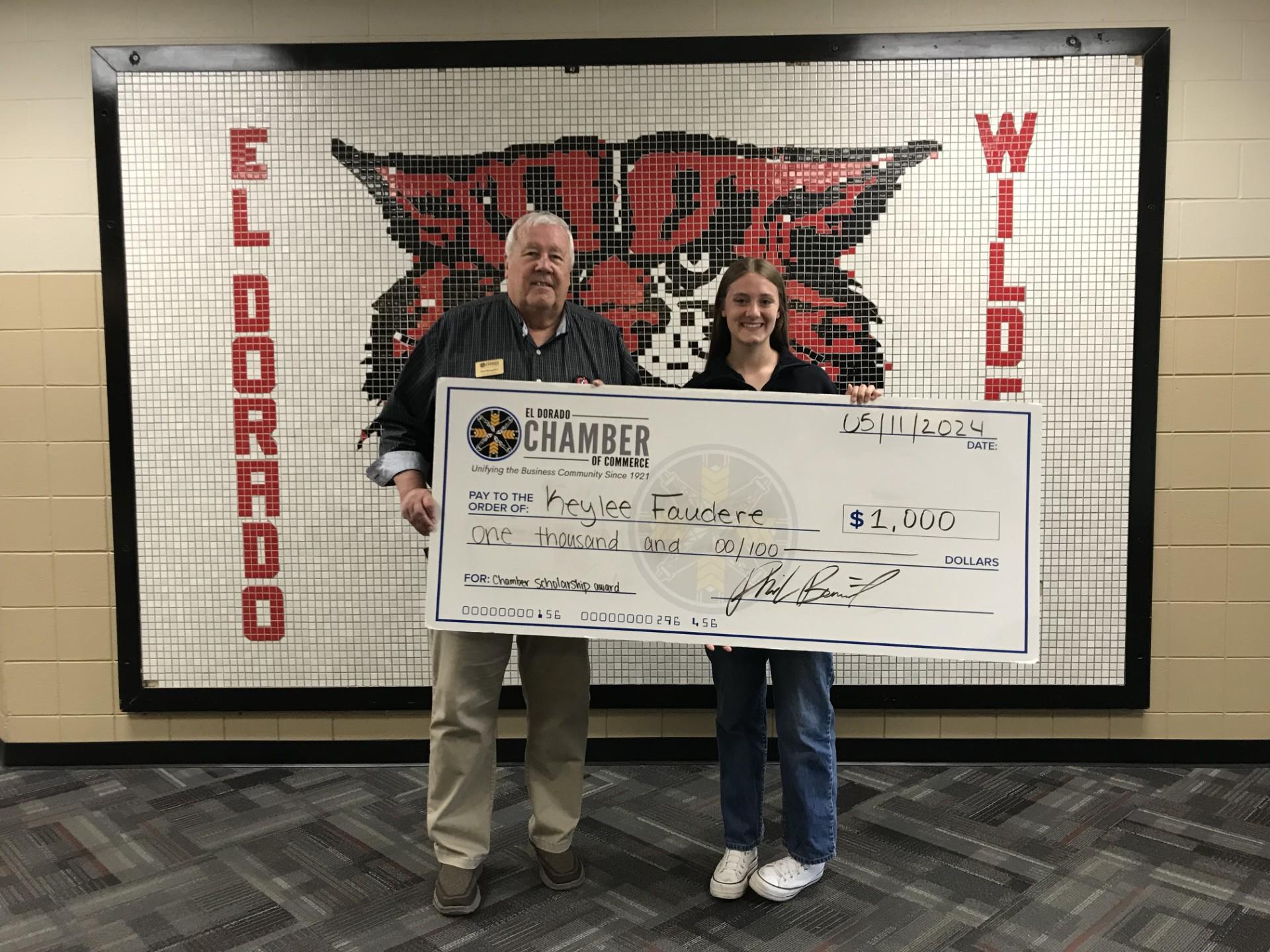 Phil Benedict awards Keylee Faudere of El Dorado High School with a $1,000 scholarship. Photos courtesy.