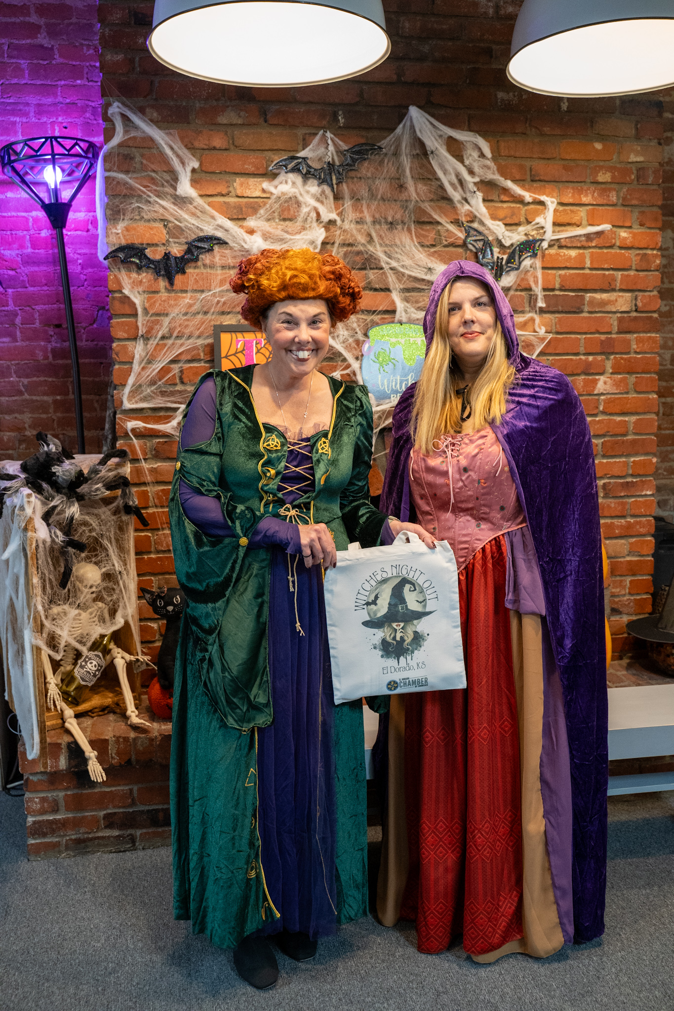 Two witches had ghoulish fun dressing as witch sisters Winifred and Sarah Sanderson from the movie Hocus Pocus. Photo by Nikole Babb.