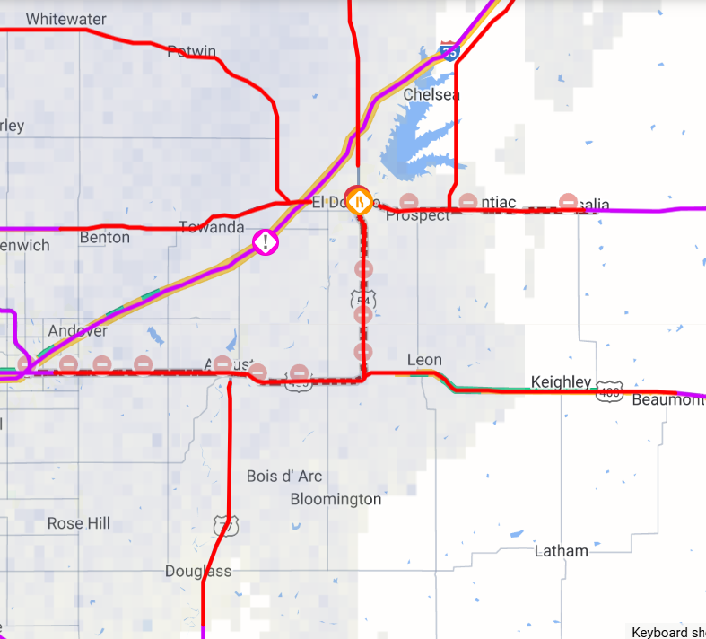 In addition to those counties there are several highways in Butler County that are marked as closed by the Kansas Department of Transportation, (KDOT), KanDrive app. As of 6:30pm, the following roads have been marked closed by the KDOT: