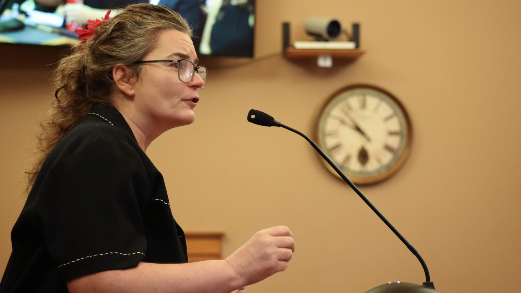 Charlotte O’Hara, a former county commissioner for Johnson County, testifies Feb. 26, 2025, in favor of a bill that would prohibit local officials from voting when they have a conflict of interest