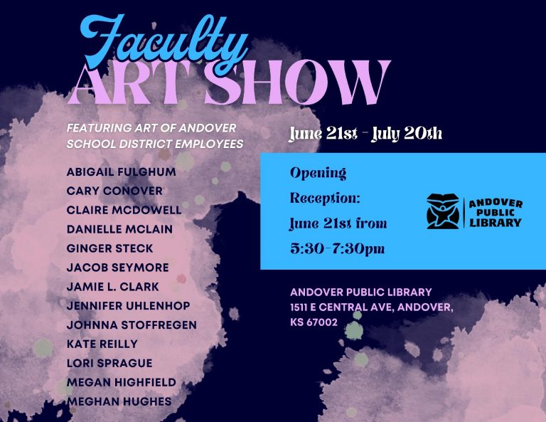 The vibrant artistic talents of local educators from the Andover School District will be on display at the upcoming community art show, scheduled to open on June 21st, 2024, at Andover Public Library.