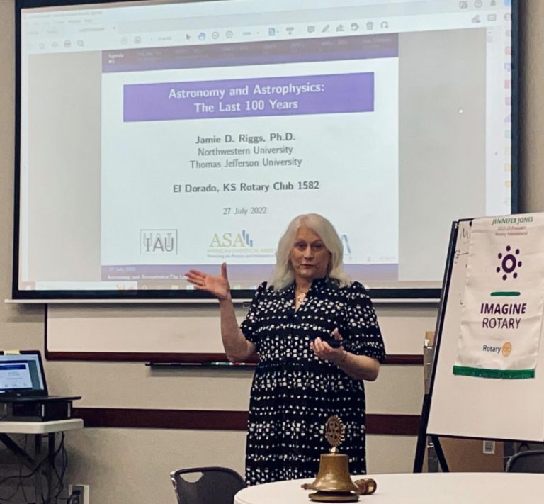 The El Dorado Rotary Club welcomed Astrostatistician, Jamie D. Riggs, Ph.D.