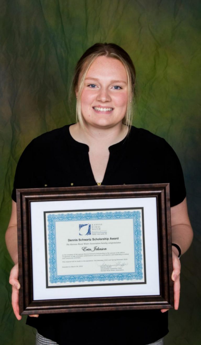 The Kansas Rural Water Association recently named the winner of its 2022-2023 scholarship to Erin Johnson of Towanda. The scholarship, named after long-time Association Director Dennis Schwartz is in the amount of $1,000.