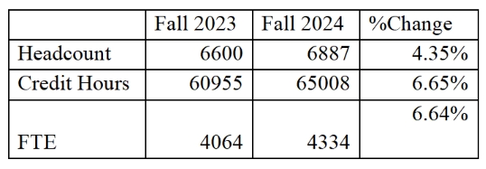 Butler County Community College, (BCC), has seen an increase of student enrollment this year compared to 2023.